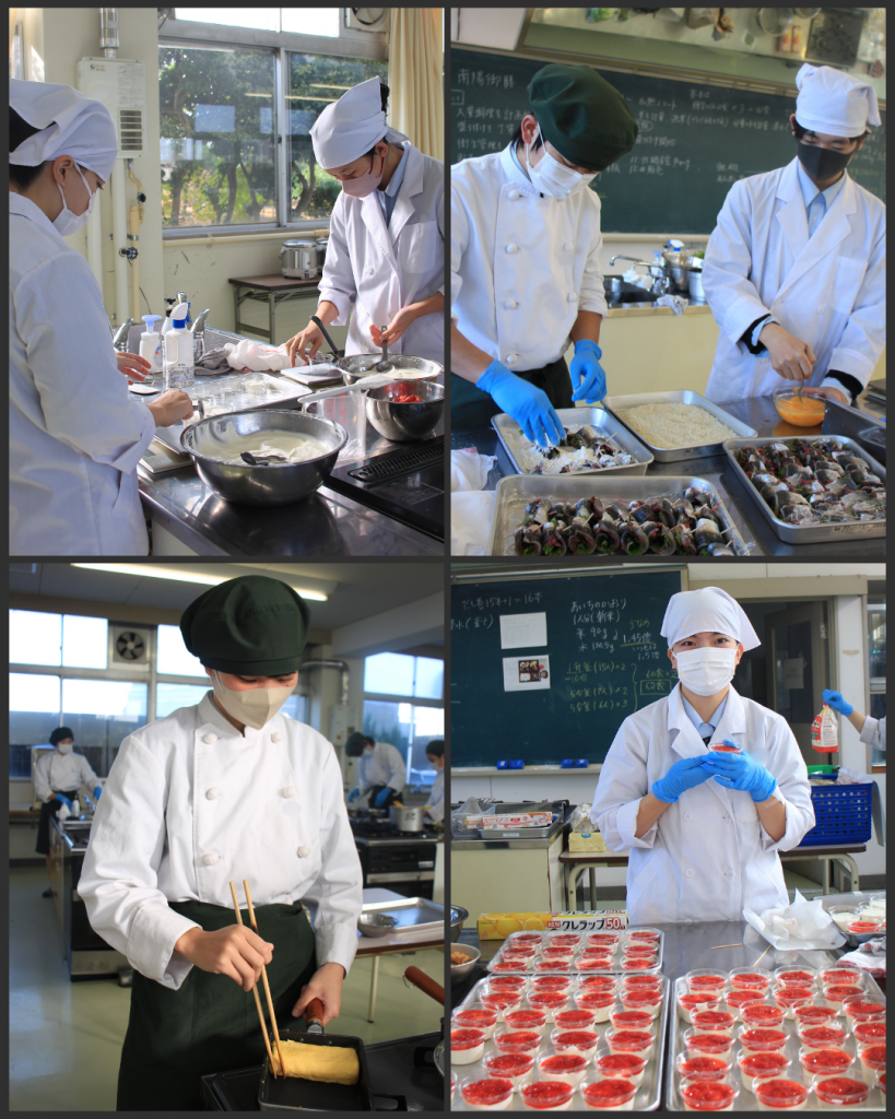 献立作成から、栄養価計算、調理、盛り付けまですべて生徒たちの手で。